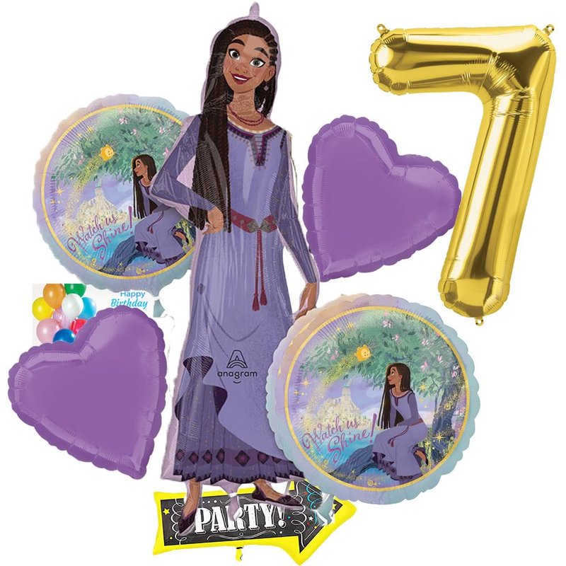 - MOVIE THEME: Score major points with our Disneys Wish Movie Theme Balloon Bouquet! This balloon bouquet features a giant character foil balloon shaped liked icon as the focal point. two round character balloons featuring the main character a birthday card, and party arrow to complete this set.