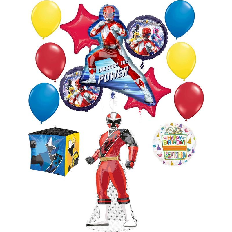 - (1) 42" Ninja Steel Power Ranger Foil Balloon,(1) 27" Red Ranger Power Rangers Foil Balloon, (2)17" Power Rangers Round Foil Balloons, (1) 16" Power Rangers Cubez Foil Balloon (4 Different Image on each side of the balloon), (1) 18" Mayflower Products Happy Birthday Present Foil Balloon, (2) 19" Red Star Foil Balloon and (6) 11" Latex Balloons 2 each of Red, Blue and Yellow. Ribbon Not Included. All Anagram Licensed Balloons are Made in USA. Founded in 1977, Anagram International leads the world in innovating and manufacturing foil balloons.
