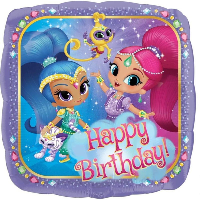 - (1) 27" XL Shimmer and Shine on magic carpet mylar shape balloon, (2) 17" Shimmer and Shine square shape mylar balloons, (1) 17" Shimmer and Shine Happy Birthday Foil Balloon, (2) 18" Pink heart mylar balloons, (1) 18" Happy Birthday To You Foil Balloon. Ribbon Not Included. All Anagram Licensed Balloons are Made in USA. Founded in 1977, Anagram International leads the world in innovating and manufacturing foil balloons.