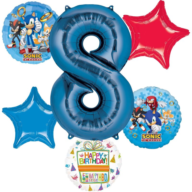 Anagram Sonic 8th Birthday Party Supplies Video Gamers Hedgehog Foil Balloon Bouquet Decorations 6pc