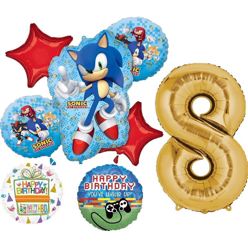 - (1) 30" Sonic Shape Foil Balloon, (1) 34" Giant Gold Number 8 Foil Balloon, (2) 17" Round Sonic Foil Balloon, (1) 18" Round Holographic Happy Birthday "You've Leveled Up" Foil Balloon, (1) 18" Mayflower Products Birthday Present Happy Birthday Foil Balloon and (2) 19" Red Star Shape Foil Balloons. All Anagram Licensed Balloons are Made in USA. Founded in 1977, Anagram International leads the world in innovating and manufacturing foil balloons.