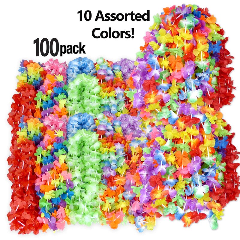 - BRIGHT AND COLORFUL: Each pack includes a variety of bright and colorful necklaces, helping create a tropical island theme.