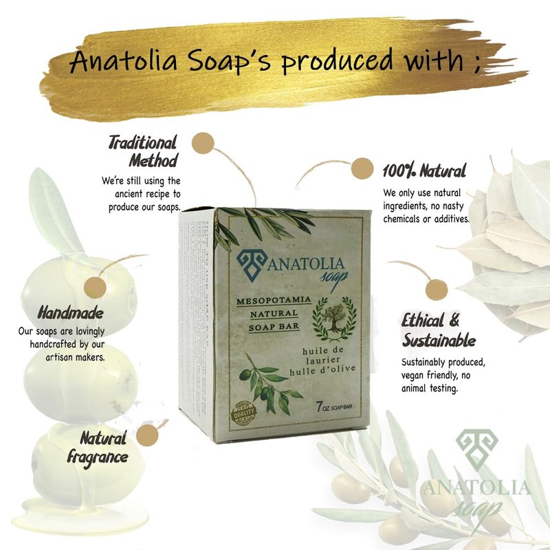 - ✓ ANATOLİA SOAP 100% OLİVE OİL MESOPOTAMİAN SOAP: Experience the ancient beauty secret of Mesopotamia with this 100% olive oil soap from Anatolia. Made with traditional techniques, it nourishes and revitalizes your skin, leaving it soft and smooth.