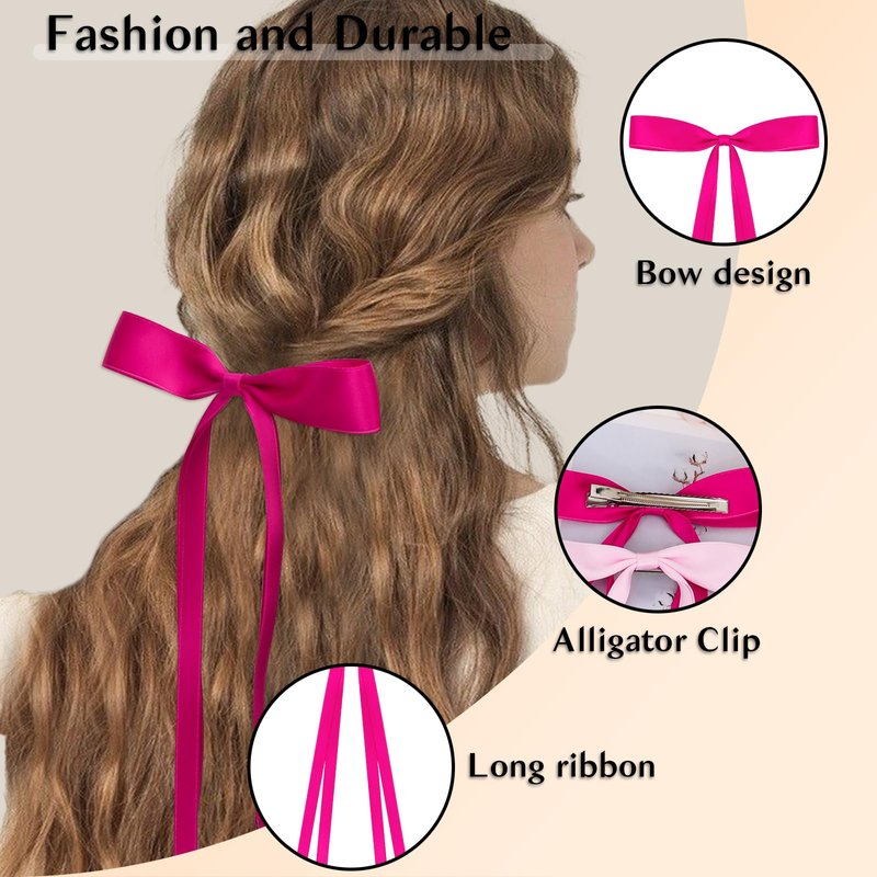 - A Great Value Set:The set contains 2 Silky Satin Hair Bows with Tassel+2 Silky Satin Hair Ribbon Oversized Long Tail Large Big Hair Bows Hair Barrettes Metal Clips. You will all get 4 hair ribbons (Pink and Hot pink).