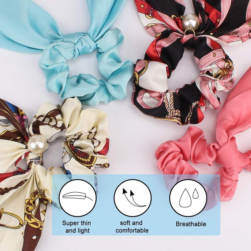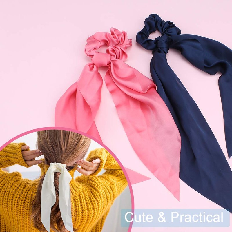 - Great for Thick hair : This set of Hair Scrunchies comes with a very durable elastic rubber band inside. super durable. great for thick hair ,long hair. 2 in 1 Design: this set of hair scarf for women could be use as normal Scrunchy Bobbles and hair scarves. very cute and beautiful bunny ear scrunchies for women and girls. it is great gift choice of Bowknot Scrunchie Ponytail Holder. this 2 in 1 elastic hairbands with hair ribbons is very practical for different occasion