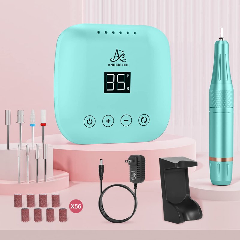ANBEISTEE Professional 35000 RPM Electric Nail Drill, Portable Nail File Kit for Any Manicure, Pedicure, Acrylic Nails Gel Polishing Removing, Designed for Salon, Home, Gift Giving, Green