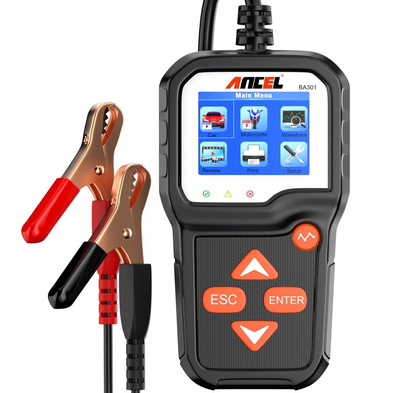 ANCEL BA301 battery tester adopts the state-of-the-art conductance testing technology to measure the actual cold cranking amps capability of starting battery, battery health status, and common fault of starting system and charging system quickly and accurately. It works on all automotive 6V & 12V 100-2000 CCA lead-acid batteries of car, motorcycle, light truck, and more, including regular flooded, AGM flat plate, AGM spiral, GEL, and EFB batteries. And it features the "Waveform" menu and a hot-key on the device to monitors real-time voltage. This tool lets you know the battery status in advance and replace with a new battery in time.