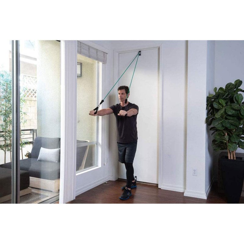 - VERSATILE: Attach all types of resistance bands, body weights, pulleys, yoga and stretch straps to this door anchor. Allows for a variety of angles and hundreds of exercises for a great, full body workout in the comfort of your home. Takes up to ZERO floor space when not exercising!