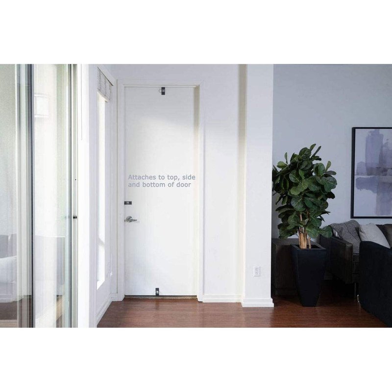 - FITS 90 PERCENT OF DOORS: Requires gap of about 1/8" between top of door and door frame (we've found that this clamp fits 90% of the doors we've tested). If you're wondering if this gap is wide enough, try this experiment: if you can slide a stack of 4 credit cards between the door and the frame, then the anchor will fit. Hook can also be clamped to the bottom of door and (in some cases) it can be mounted to the side of the door.