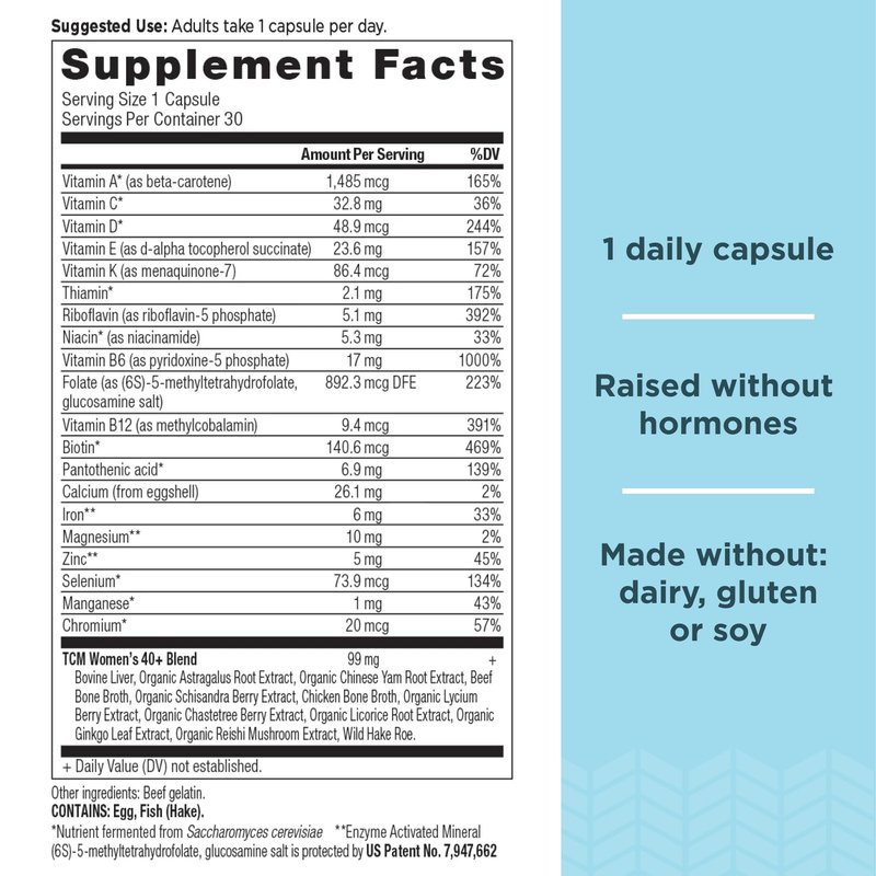 - TCM WOMEN’S 40+ BLEND- Our Traditional Chinese Method blend is based off of a Chinese tradition using herbs that has been around for more than 2,000 years. This blend contains Dong Quai extract, also known as “Female Ginseng”. We also added bovine liver and wild hake roe, which are considered some of the most nutrient-dense foods on this planet, and collagen-rich bone broth.