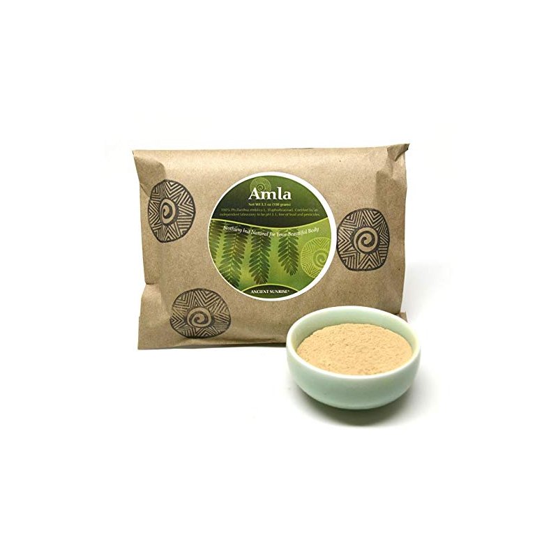 Ancient Sunrise Amla Powder - 100% natural amla for hair, Tones henna color, Strengthens hair promoting growth, High in Vitamin C, Paraben, sulfate and silicone free, 100 grams