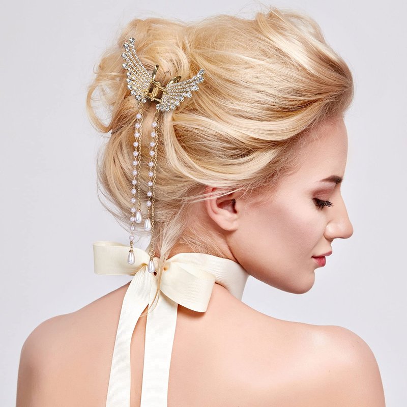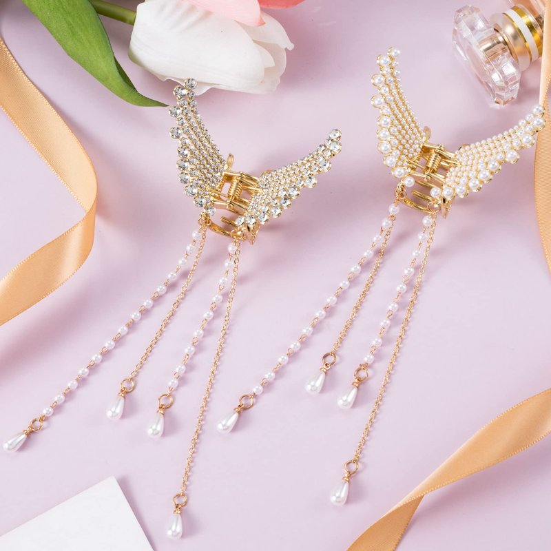 ANCIRS 2 Pack Pearl Long Tassel Hair Claw Clips for Women, Rhinestone Jewelry Butterfly Hair Barrettes Accessories for Girls