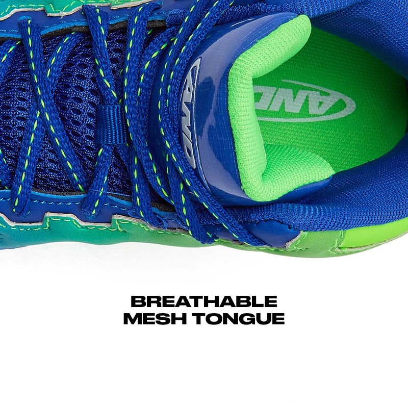 AND1 Showout Girls & Boys Basketball Shoes Kids, Boys High Top Sneakers- Medium Blue/Light Green/White, 2 Little Kid