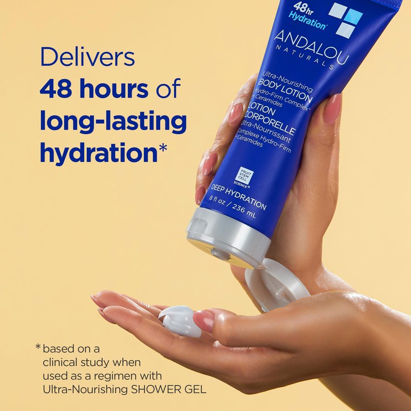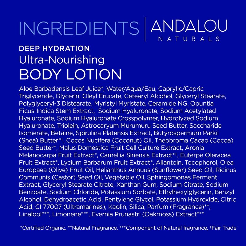 Andalou Naturals Body Lotion, Deep Hydration Lotion for Dry Skin, Ultra-Nourishing Skin Care with Hyaluronic Acid & Ceramides, Body Cream for Softer, More Supple & Glowing Skin, 8 fl oz