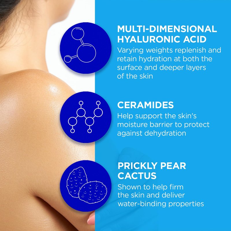 - 48 HOURS OF HYDRATION: A nourishing dry skin lotion with Ceramides and our proprietary Hydro-Firm Complex of multi-dimensional Hyaluronic Acid, Prickly Pear Elixir and Algae Oil, helps deliver intense, long-lasting moisture without feeling heavy