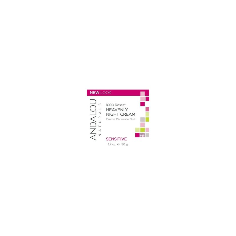 Andalou Naturals Heavenly Night Cream 1000 Roses, Sensitive Skin Moisturizer for Face, Enriched with Hyaluronic Acid & Aloe Vera, 1.7 Ounce