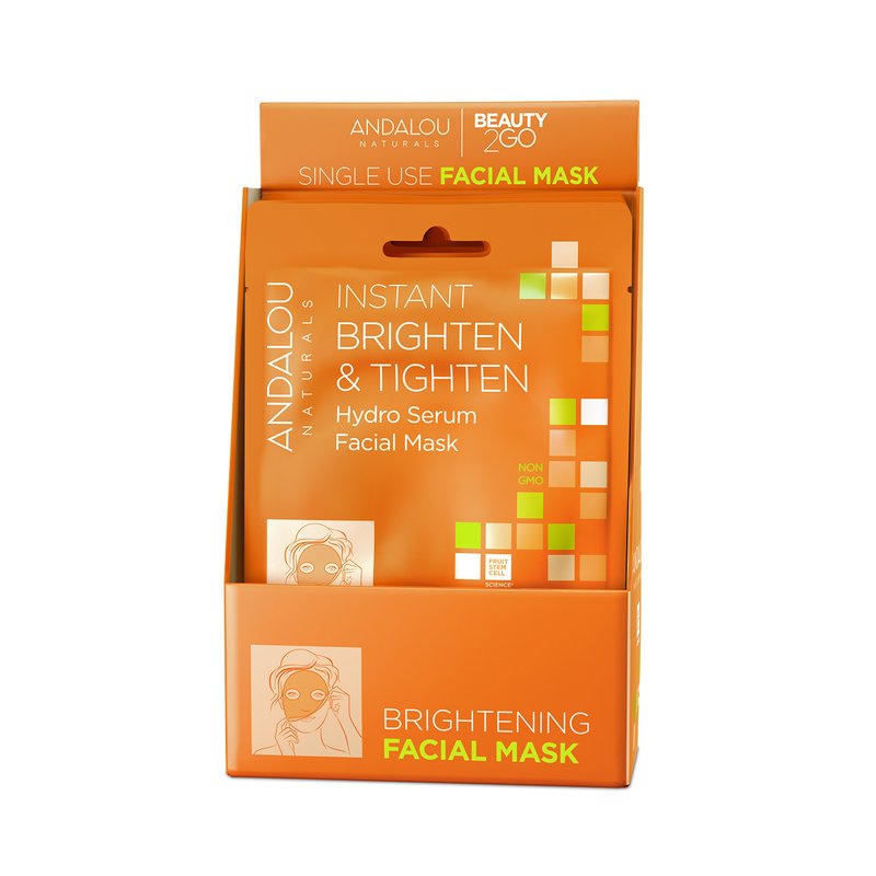 Andalou Naturals Instant Brighten and Tighten Hydro Serum Facial Mask, Single Face Mask, 0.6 Ounce (Pack of 6)