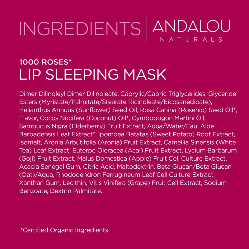 - OVERNIGHT LIP MASK: Andalou Naturals Lip Sleeping Mask is powered by Alpine Rose Stem Cells & Rose Oil to lock in moisture and help nourish dry, chapped lips. Our lip moisturizer helps restore lips’ smoothness and suppleness for softer and plumper lips