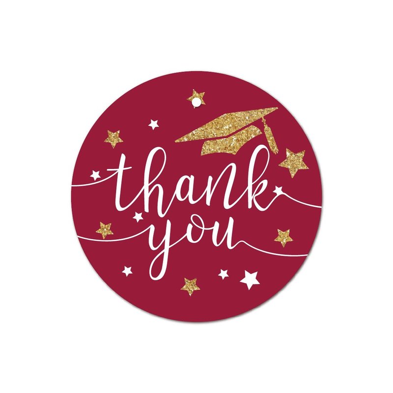 Andaz Press Burgundy Maroon and Gold Glittering Graduation Party Collection, Round Circle Gift Tags, Thank You!, 24-Pack