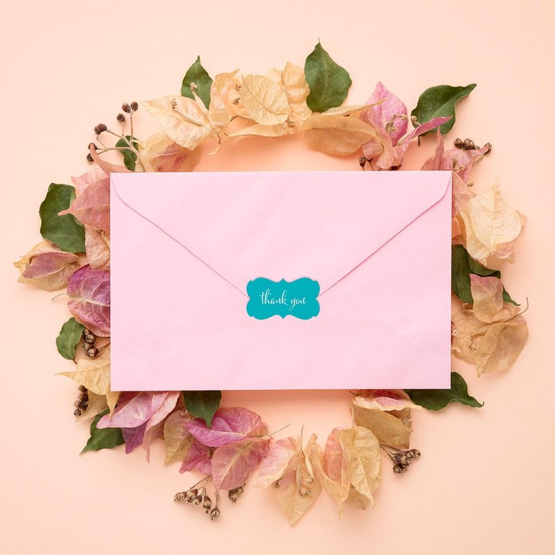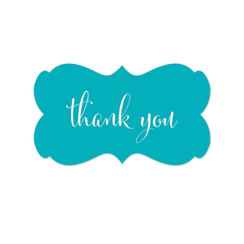 Andaz Press Fancy Frame Rectangular Label Stickers, Thank You, Aqua Turquoise, 36-Pack Wedding Decorations, Wedding Favors, Stickers for Packaging, Party Favor