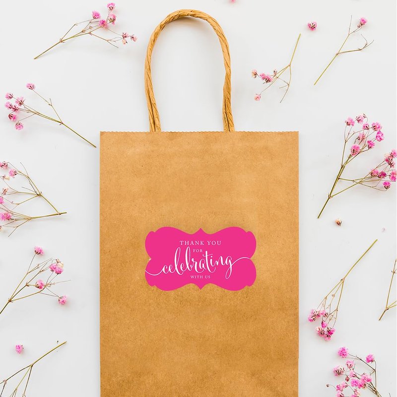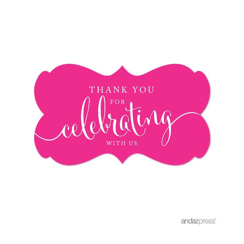 Andaz Press Fancy Frame Rectangular Label Stickers, Thank You for Celebrating with Us, Fuchsia, 36-Pack Wedding Decorations, Wedding Favors, Stickers for Packaging, Party Favor