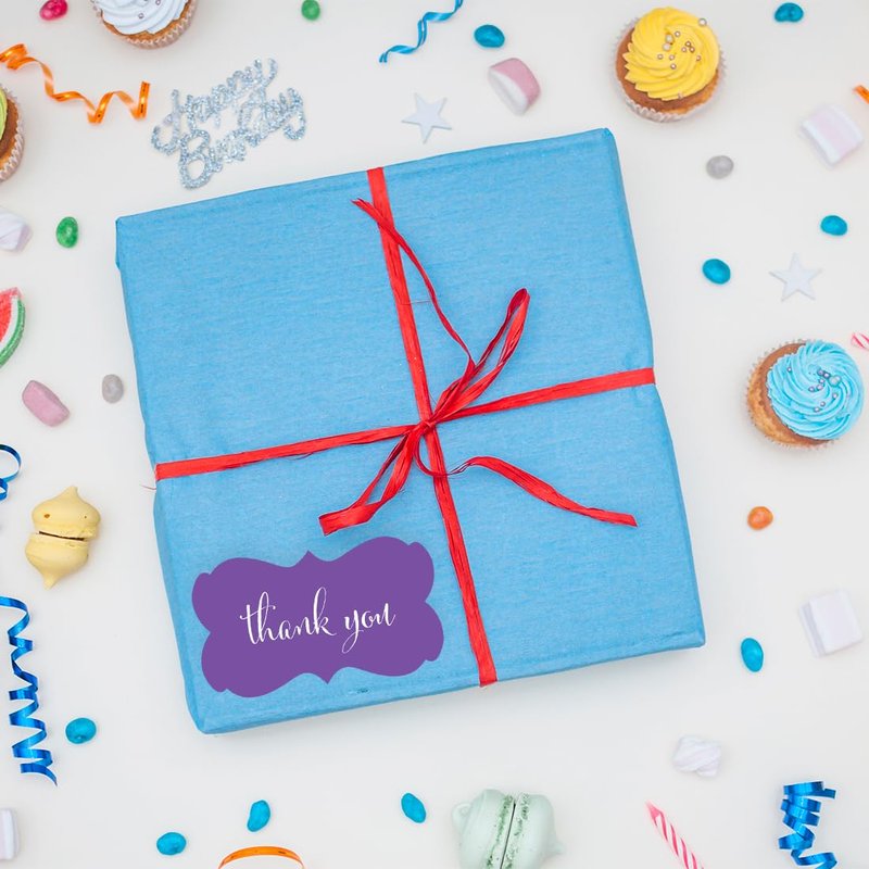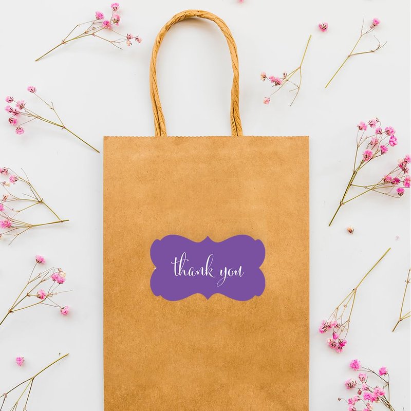 Andaz Press Fancy Frame Rectangular Label Stickers, Thank You, Purple, 36-Pack Wedding Decorations, Wedding Favors, Stickers for Packaging, Party Favor