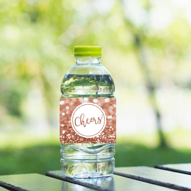 Andaz Press Glitzy Faux Rose Gold Glitter Water Bottle Sticker Labels, Cheers!, 20-Pack Prom Water Bottle Labels Bachelorette Wedding Birthday Anniversary Graduation