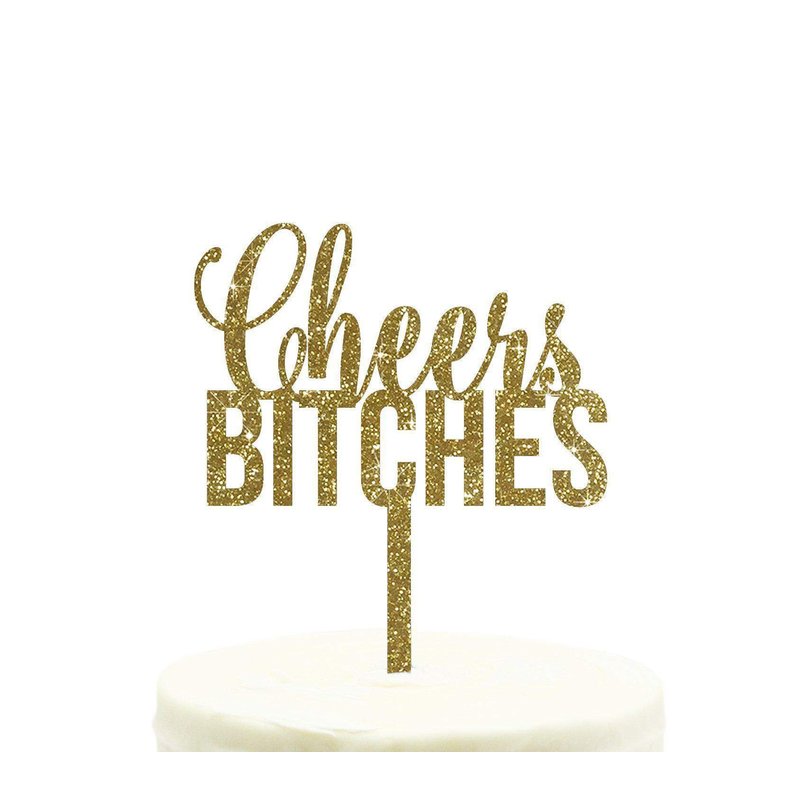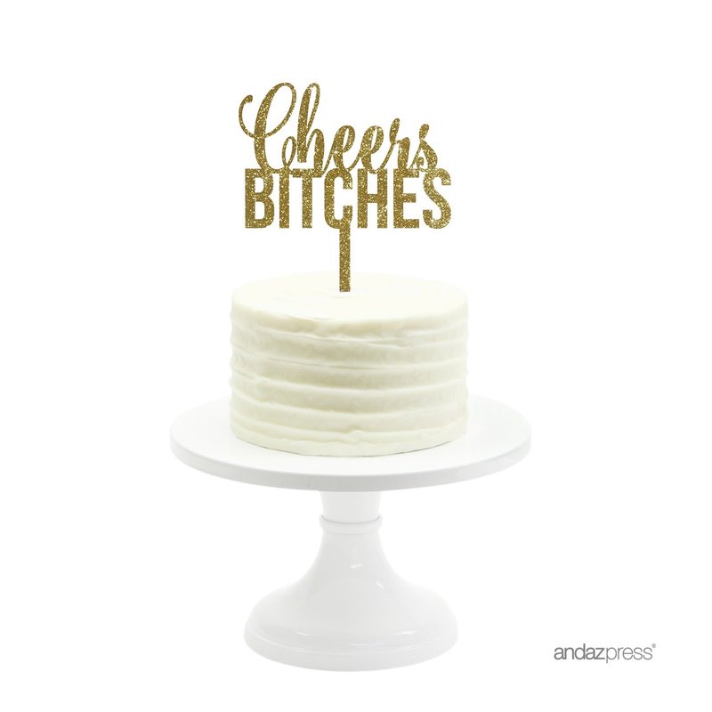 Andaz Press Party Acrylic Cake Toppers, Gold Glitter, Cheers Bitches, 1-Pack, Bachelorette Decorations
