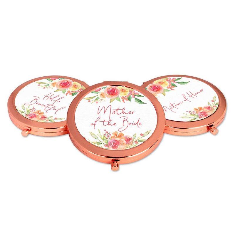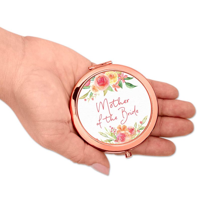 Andaz Press Rose Gold Compact Pocket Makeup Mirror Wedding Gift, English Garden Florals, Mother of The Bride, 1-Pack, Girls Women Bridal Shower Wedding Party Gifts