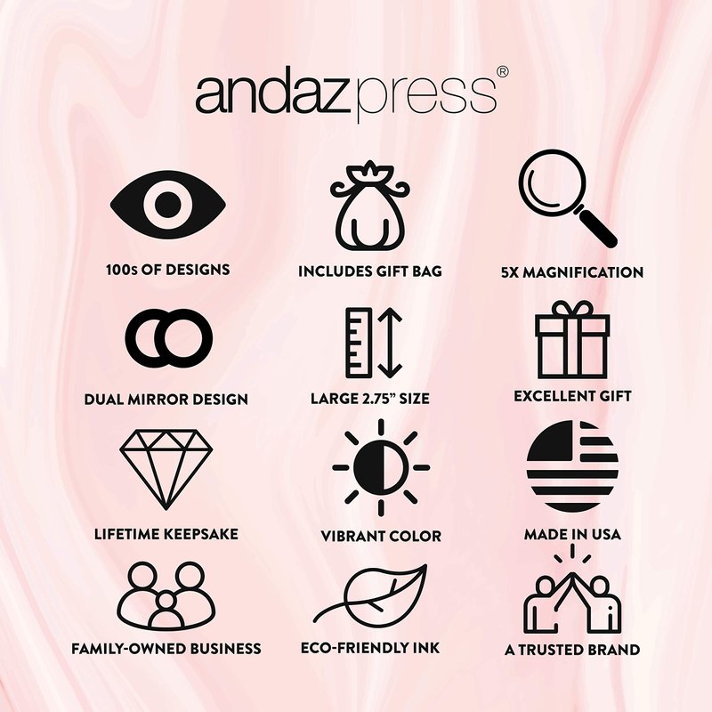 - SIZE: 2.75-inch round. Both sides of compact have a mirror. One mirror is normal, and the other is 5x magnification.