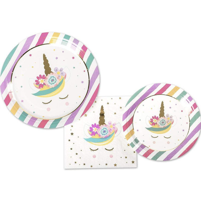 Andaz Press Tableware Unicorn Party Plates and Napkins Set, 24 Piece Set 9-Inch Plates, 7-Inch Plates, and Bulk 40-Pack 6.5-Inch Lunch Napkins, Unicorn, Princess, Pony Birthday Party Decorations Kit