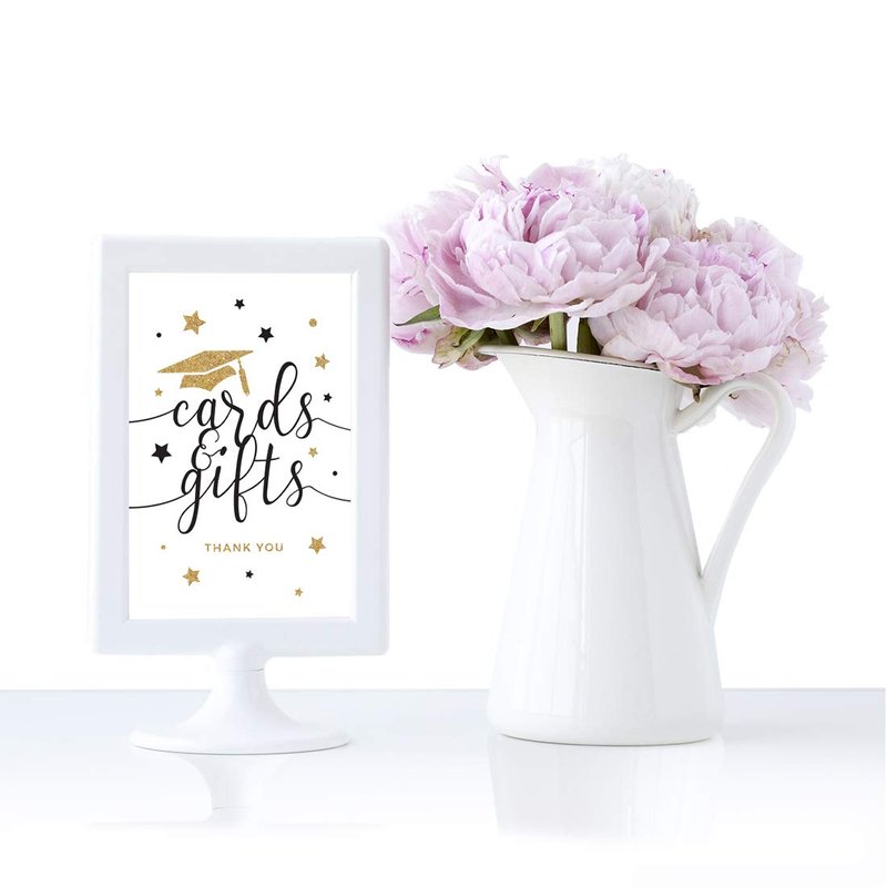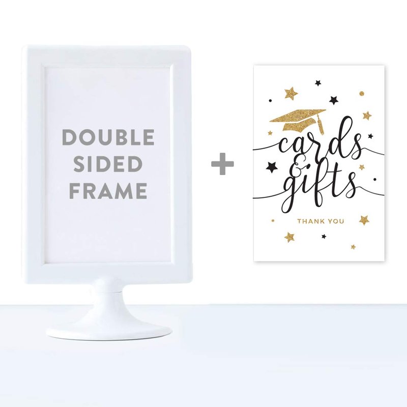 Andaz Press White and Gold Glittering Graduation Party Collection, Framed Party Sign, Double-Sided 4x6-inch, Cards & Gifts, 1-Pack, Includes Reusable Frame