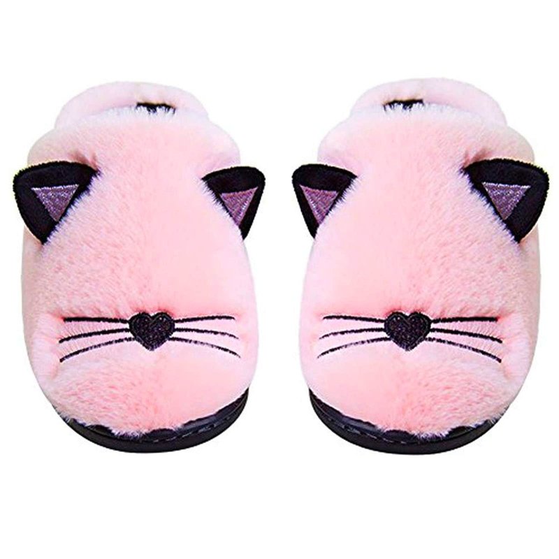 Anddyam Kids Family Cute Cat Household Anti-Slip Indoor Slippers for Girls and Boys (Big Kid (9-12 Years), Pink)