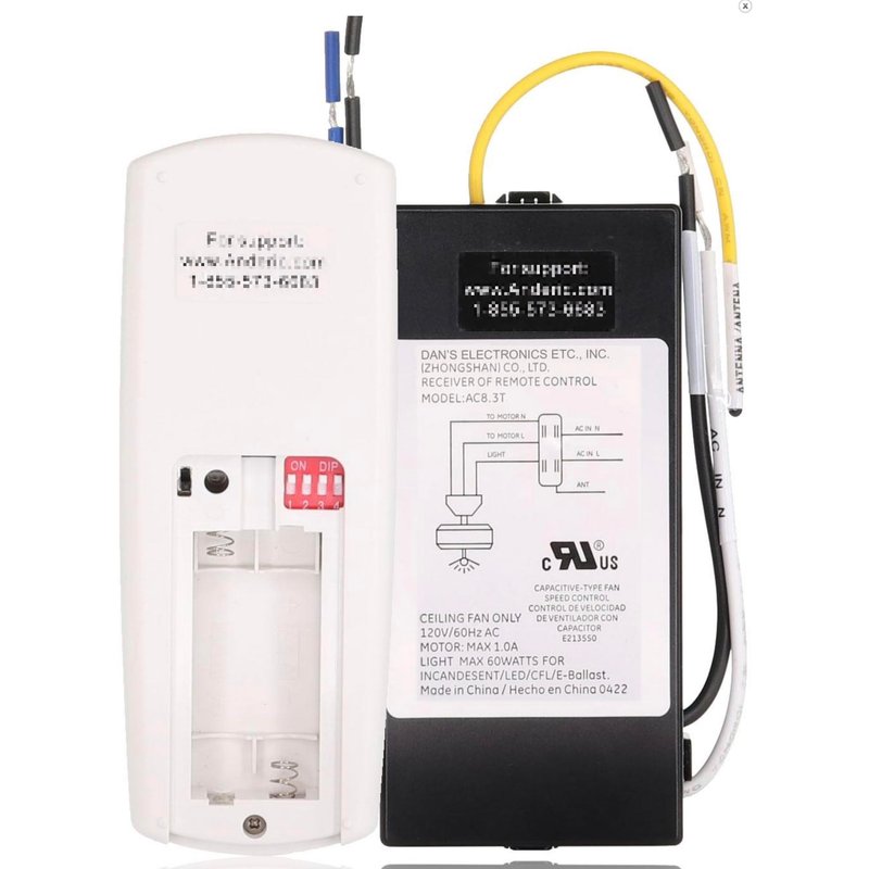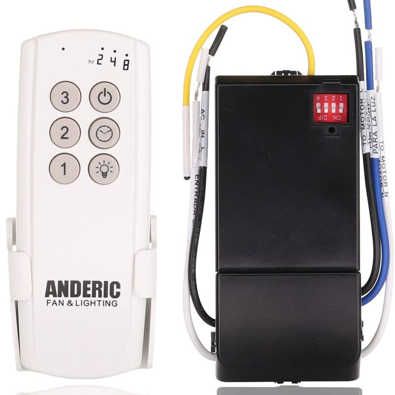 The Anderic Universal Ceiling kit is designed to work with all 3-speed fans. If you want to add remote control functionality to your fan, this kit is for you. Features: - Fan speeds: Off, low, med, high - Power - Time delay - Light on/off/dimming - Works lights with Incandescent, LED, CFL, and E-Ballast bulbs Works for all: - 3-speed fans with pull strings - 3-speed fans with remotes initially supplied with the same style receiver. The rectangular receiver that installs in the ceiling canopy. Works all major brands.