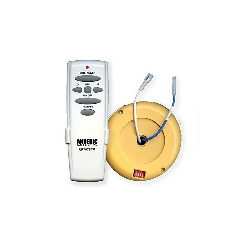 Introducing the Anderic Replacement for FAN2R/UC7078T Kit for Ceiling Fans, the perfect solution for upgrading your ceiling fan's control system. Specifically designed to replace the original Hampton Bay FAN-2R receiver and UC7078T remote with reverse functionality, this kit offers seamless compatibility and enhanced convenience. Enhance Your Ceiling Fan Control: With the Anderic FAN2R receiver unit and RR7078TR remote control, you can effortlessly adjust your ceiling fan's speed, direction, and other essential functions. The remote features all the necessary buttons, including a dedicated reverse key, ensuring smooth operation and convenient control. Comprehensive Kit: This kit includes everything you need for a straightforward installation. It consists of the FAN2R receiver unit with a 9-prong plug that directly connects to your ceiling fan, along with the Anderic RR7078TR With Reverse remote control. For added convenience, a wall mount clip is also included, providing a handy storage solution for the remote. Durable Design and Specifications: The FAN2R receiver boasts a compact design, measuring 4.25" in diameter and 1.75" in thickness. The RR7078TR remote is ergonomically designed, measuring 5.5" in length, 2" in width, and 1" in thickness, ensuring comfortable handling and intuitive button placement. Both components are built to last, ensuring long-lasting performance and reliable operation. Important Note: Please note that this kit is specifically designed to replace the receiver and remote originally installed in your fan. It is not compatible with fans that do not already have the required receiver pre-installed. If your fan includes the Home Decorators Collection MR77A Receiver, a slight modification is required, which involves removing the old bracket from the light housing. Detailed installation instructions can be found in the Downloads area. Additionally, this kit serves as a replacement for the Hunter 8511204 receiver, as the old Hunter remote will not function with this receiver. Upgrade your ceiling fan's control system with the Anderic Replacement for FAN2R/UC7078T Kit for Ceiling Fans. Enjoy seamless compatibility, enhanced convenience, and reliable performance. Take full control of your fan's speed, direction, and more, all at your fingertips. Upgrade to this comprehensive kit and experience a superior remote control solution for your ceiling fan.