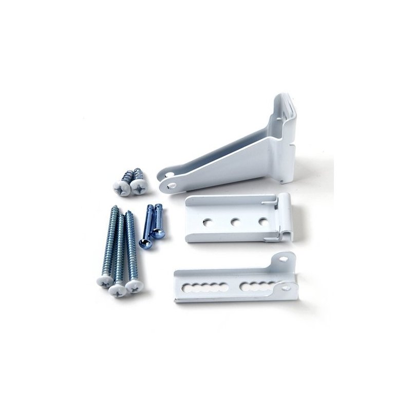 Storm door closer bracket in white color includes one jamb bracket, one door bracket and screws.