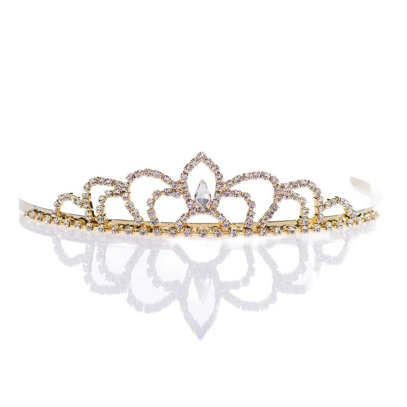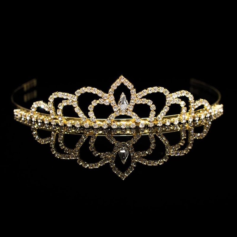 - BASIC DETAILS: The Sissy Tiara measures 1 1/4" high, is crafted of high-quality gold metal, and features clear rhinestones