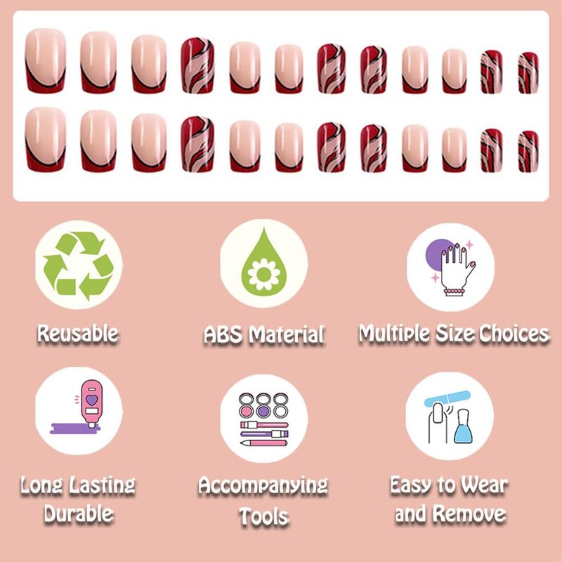 - Style: French Tip Press on Nails Red Square