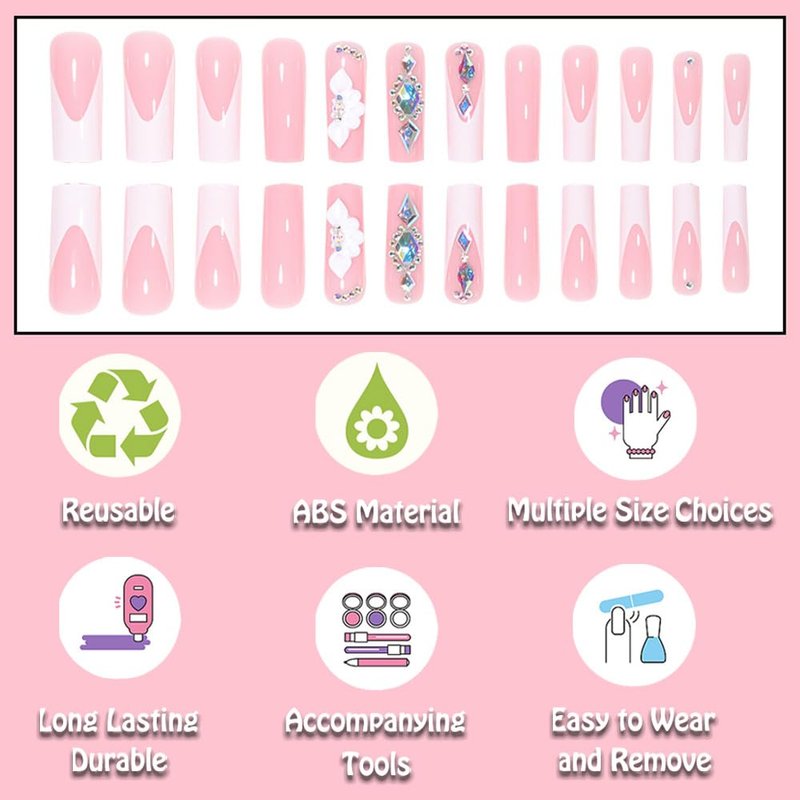 - Style: French Tip Press on Nails Square Medium Long