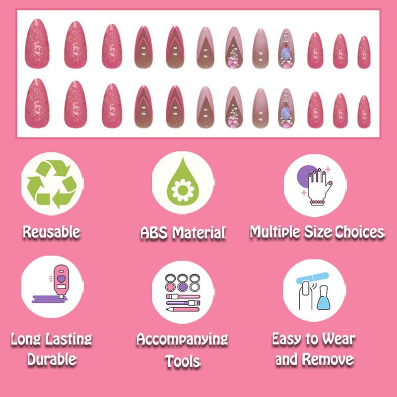 You can stick any accessories on top of the fake nail using glue or glue sticker as well!