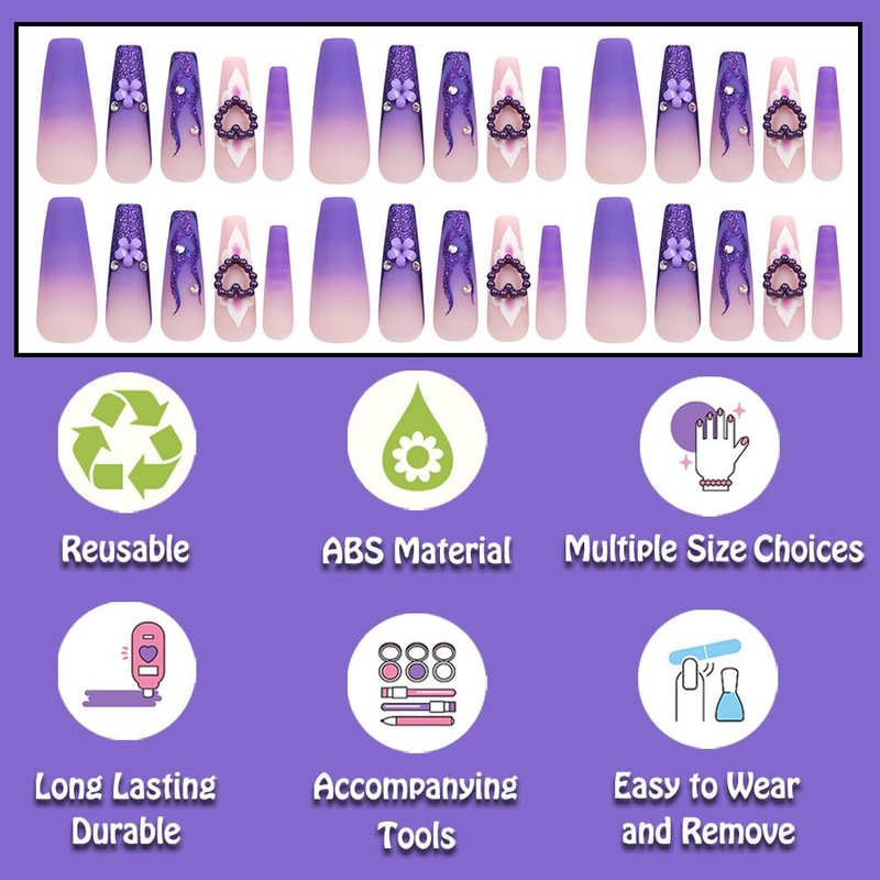 - [Worry-Free Service] The press on nails may be slightly different from the picture due to display, lighting and shooting reasons, which is a normal phenomenon, If you have any questions, please feel free to contact us. We will provide 24-hour customer service support, I will give you a satisfactory answer or a full refund.