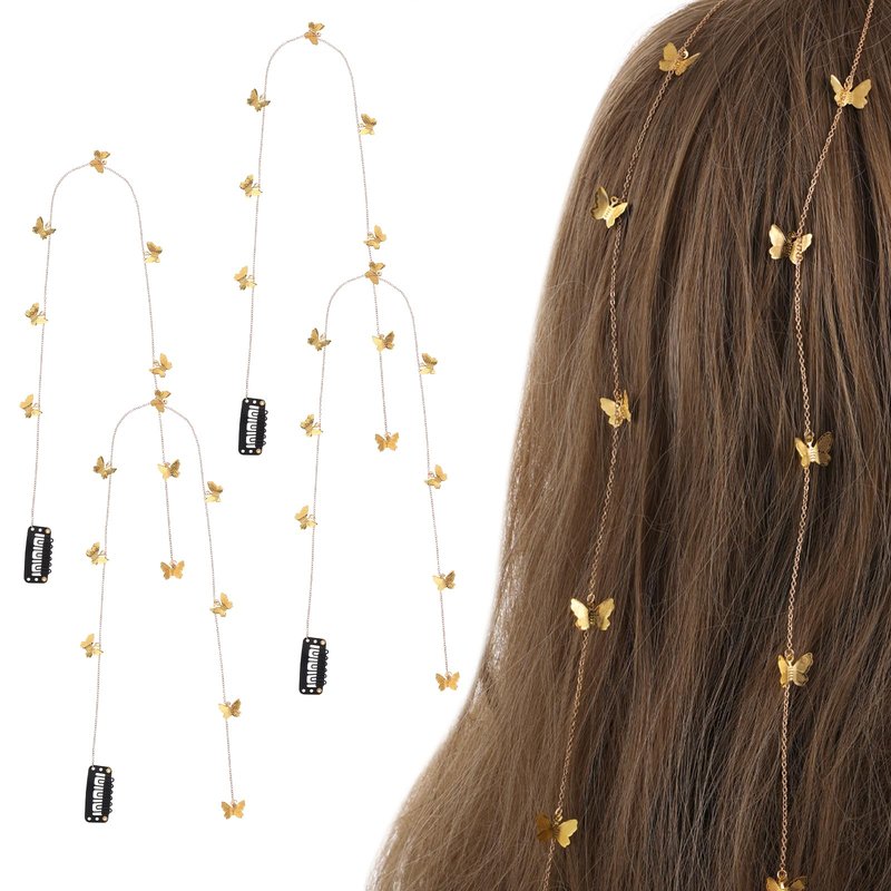 - 【What you will get】You will receive 4 pieces of hair clips with butterfly tassels, a sufficient quantity to meet your daily hairstyle needs, you can also share them with family and friends. Golden hair chains for prom parties are suitable for combining with different hairstyles and clothing, whether it is everyday, casual, or formal occasions, it can show different fashion styles.
