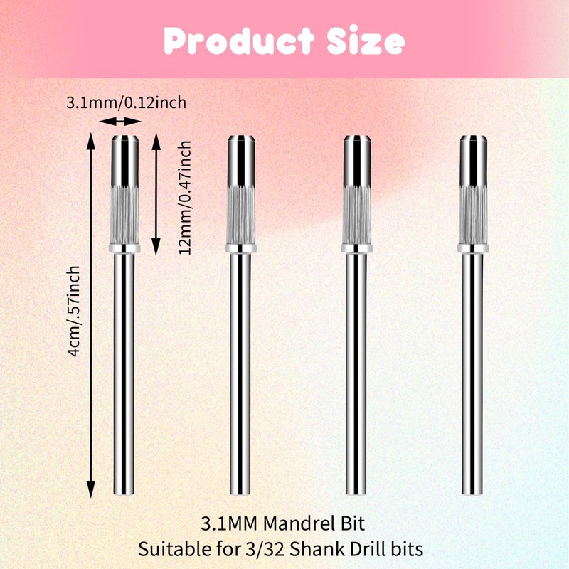 - 【Useful Mandrel Bits Set】Introducing our Small Mandrel Bits Set! Included are 4 silver drill bits designed for 3.1mm sanding bands, ensuring precise and gentle nail grinding without harming the surrounding skin. Compatible with 3/32" shank nail drill machines, they offer easy control for flawless results. Plus, a convenient plastic box keeps your nail drill bits organized and hygienic.