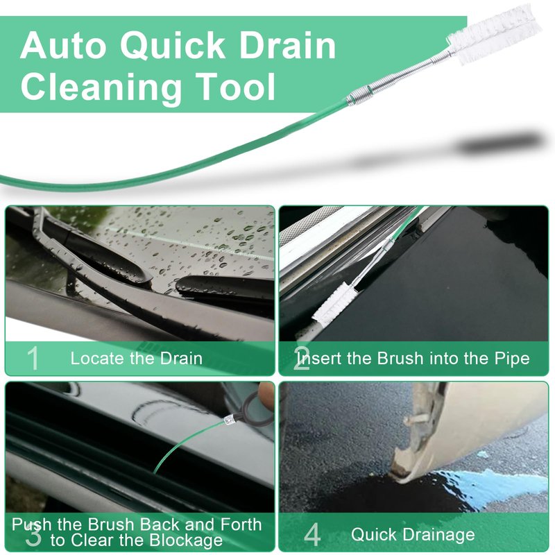 - 【Wide Application】This flexible drain hole brush is perfect for a car sunroof, auto wiper, fuel tank drain hole, car door drain hole, skylight drain tube, and so on. Also ideal for refrigerator drain cleaning, fish tank cleaning, hose or glass tube cleaning, water pump accessories cleaning, filter systems cleaning, etc. Perfect solution for dripping and clogging problems
