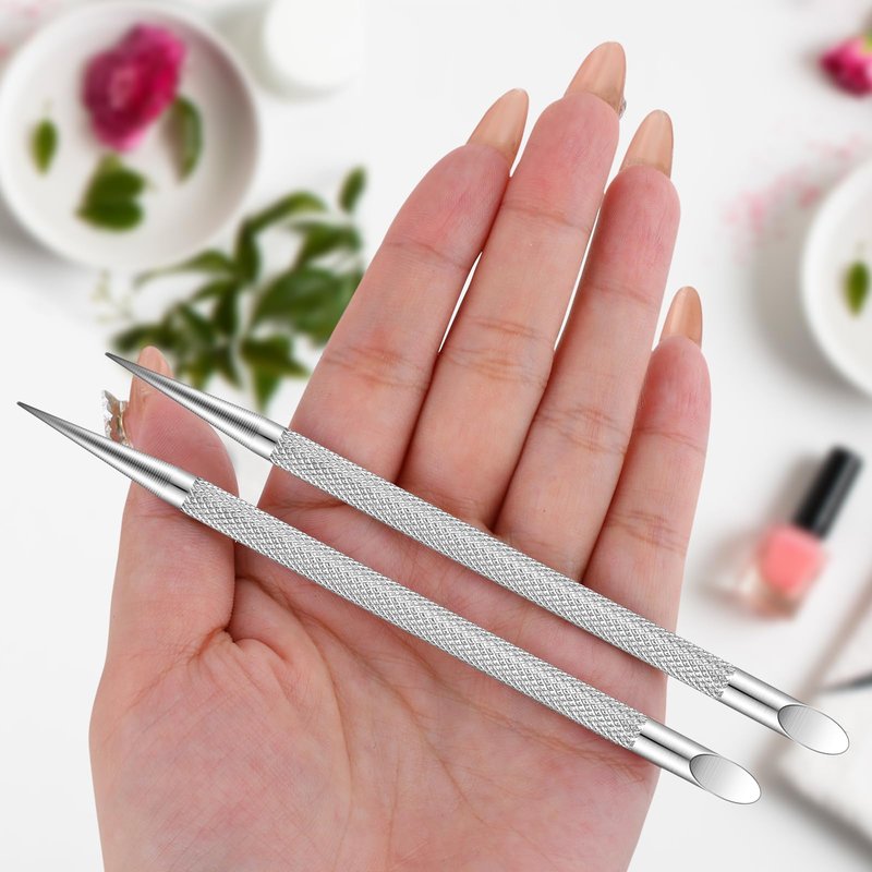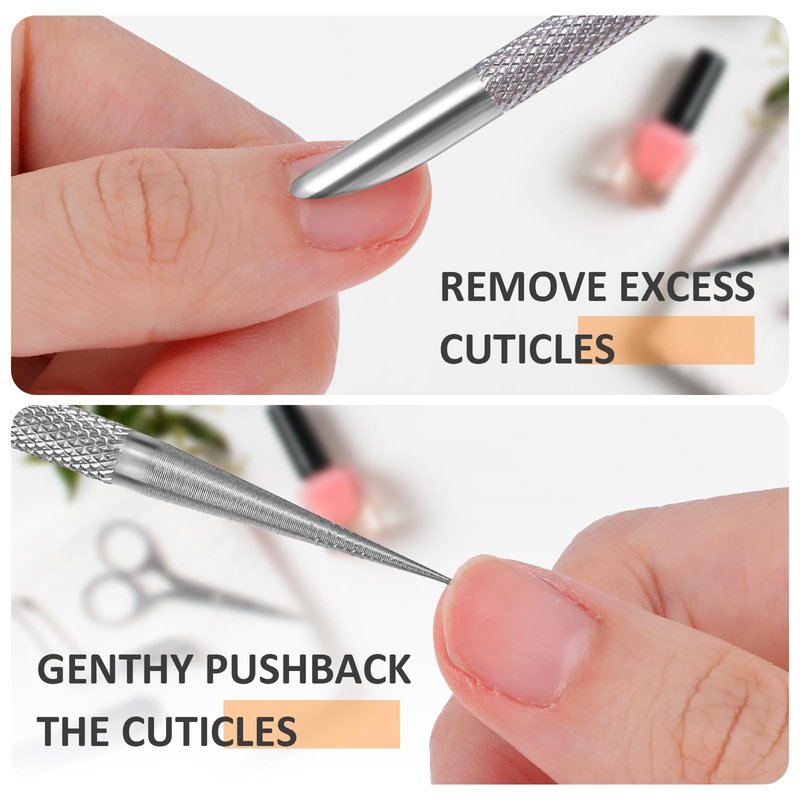 - 【Double Head Design】The cuticle pusher tool is designed with a pointed and a beveled head at both ends for different functions. The beveled head is used to push the cuticle, and the tip scrapes off the hard-to-remove residual skin on the nails. good for trimming extra nail cuticles as well as hard-to-reach areas around and under nails, easy to remove nail cuticles, and provides you with a comfortable user experience.