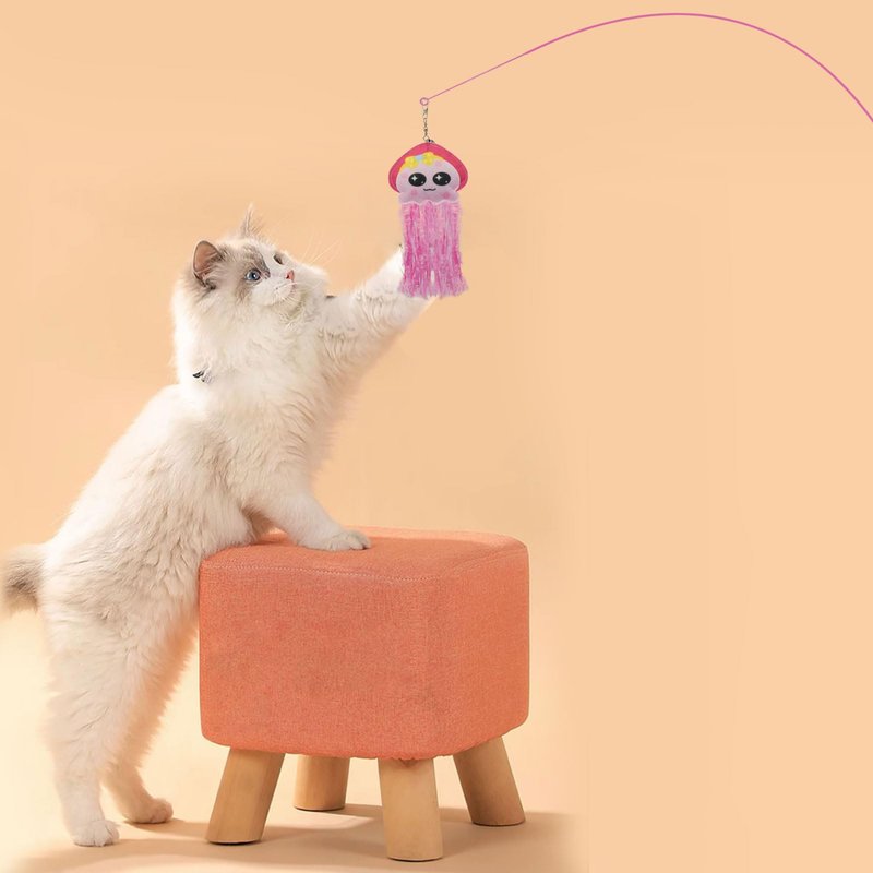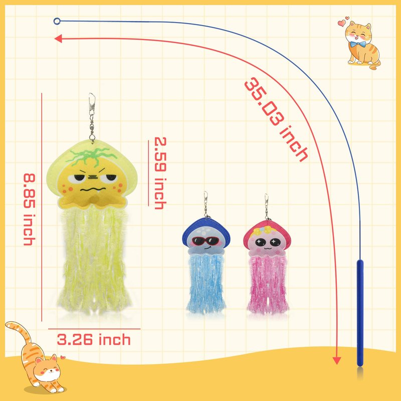 - Vivid Jellyfish Shape Cat Wand Refill Attracts Cats’ Attention: The cat wand replacement adopts the shape of jellyfish. With cute patterns, tassels, and bells, the cat toy can effectively attract cats’ attention