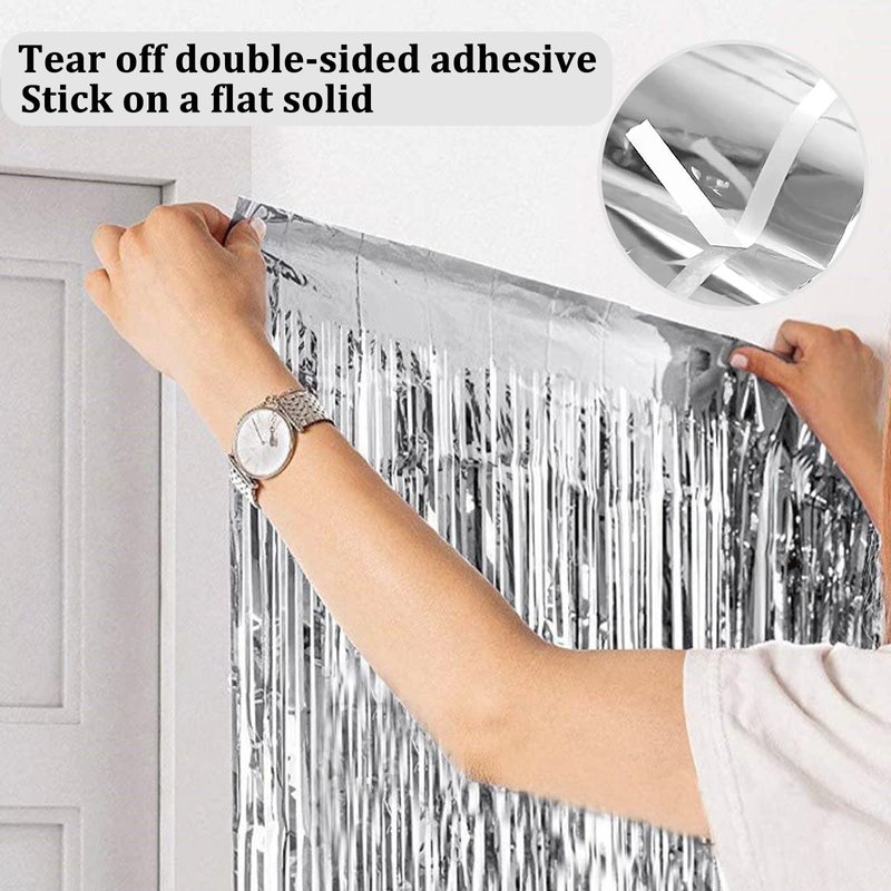 - ☻It Protects Your Walls: Our foil fringe curtain backdrop can cover doorways or walls as a background for DIY photography. It with self-adhesive, and after each use, you can easily remove it and then store it for the next time, which is necessary for your home. You do not need to clean the wall after each party.