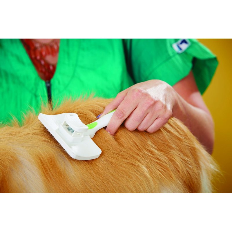 - REDUCES SHEDDING UP TO 90-PERCENT: The slicker brush cuts down on shedding by removing knots and tangles, making it effective even on thick coats, thanks to its perfectly angled pins.