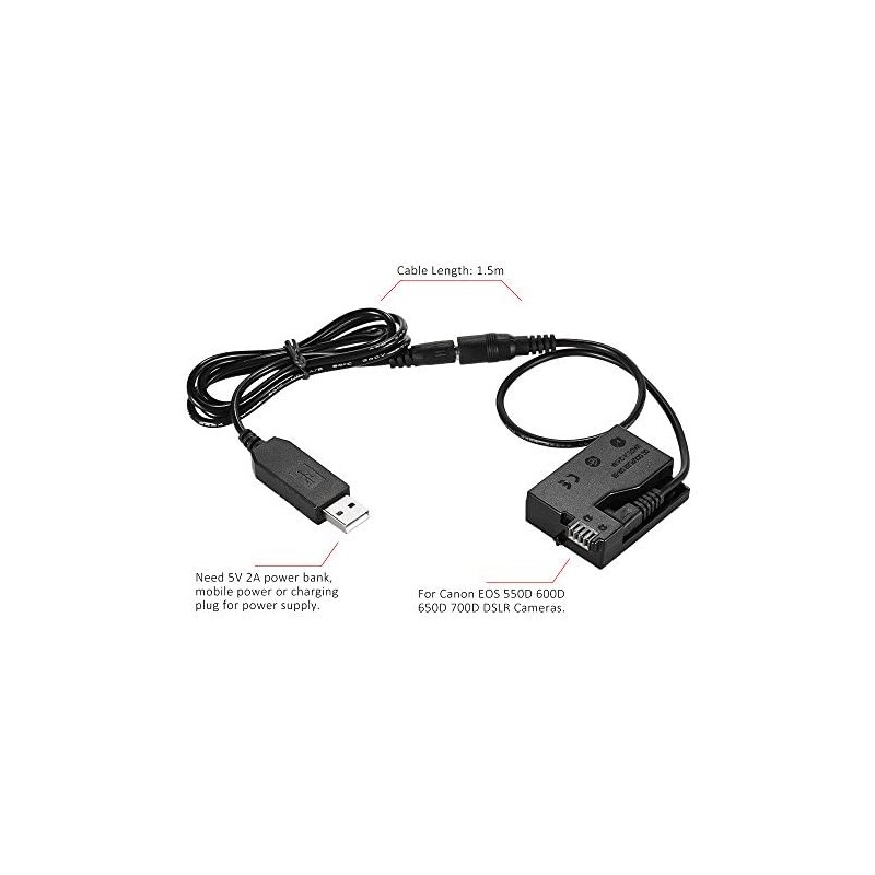 Andoer DR-E8 Dummy Battery with DC Power Bank USB Adapter Cable Replacement for LP-E8 for Canon EOS 550D 600D 650D 700D DSLR Cameras