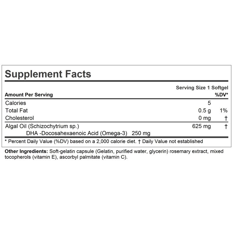 - SUPERIOR Pure BIO-ACTIVE INGREDIENTS – Provides non-GMO, sustainable, plant-based source of DHA, derived from Schizochytrium sp. Also: rosemary extract, mixed tocopherols and ascorbyl palmitate. Contains NO Milk / Dairy-Free, Gluten Free; NO soy, yeast, corn, wheat, sodium, salt, sugar, cholesterol, color, preservative, common allergens or manufacturing additives.